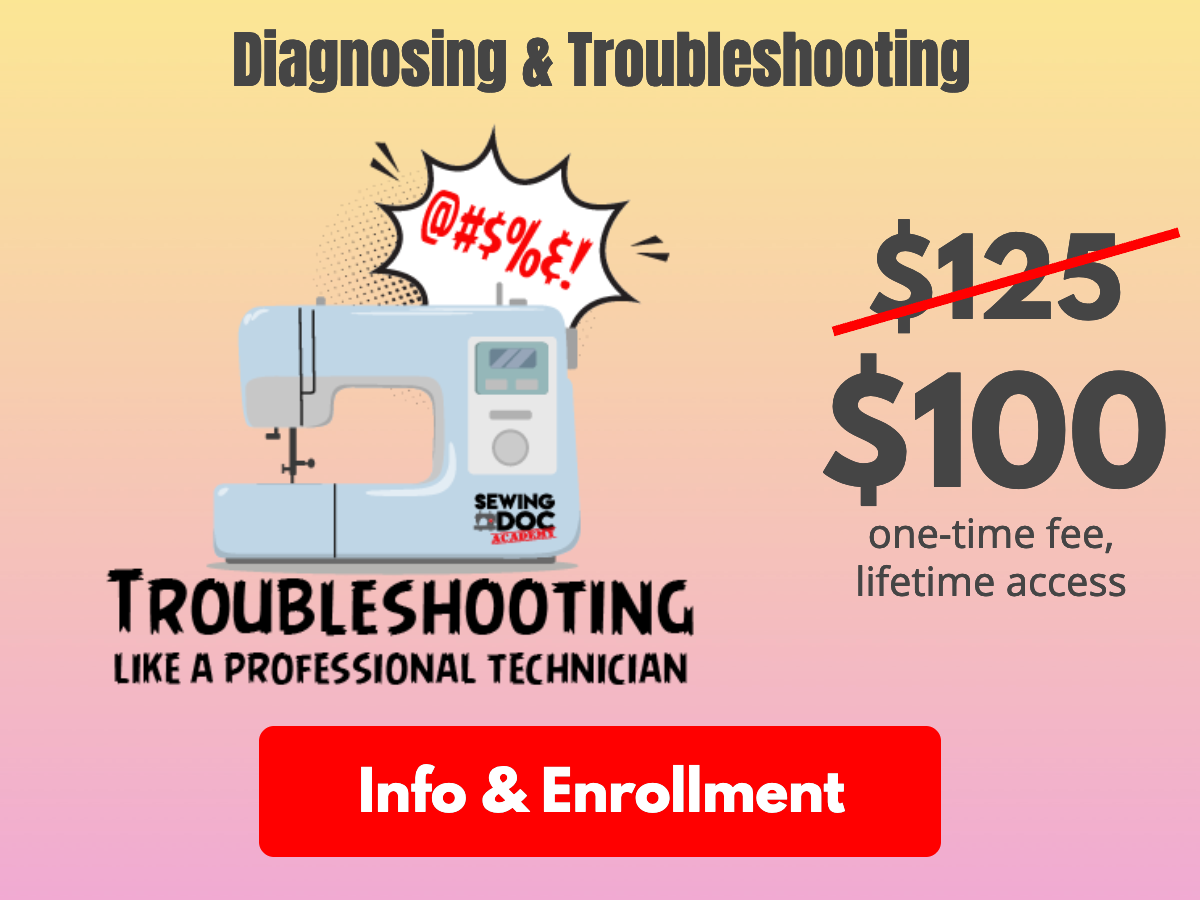 This workshop is designed to help you self-diagnose your sewing machine, identify the issue, correct it, and keep sewing. It walks you through the EXACT same procedures used in our professional service shop every day to diagnose the problems on a customer's machine, correct them, and keep them sewing. This could save you weeks of waiting and the cost of a repair you didn't need.