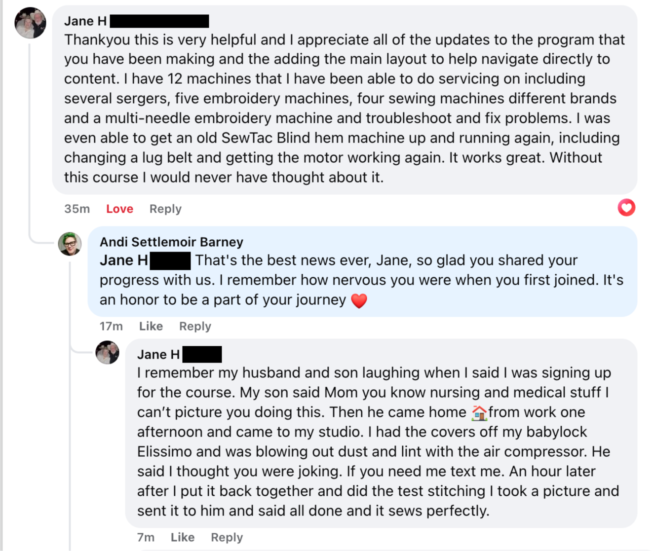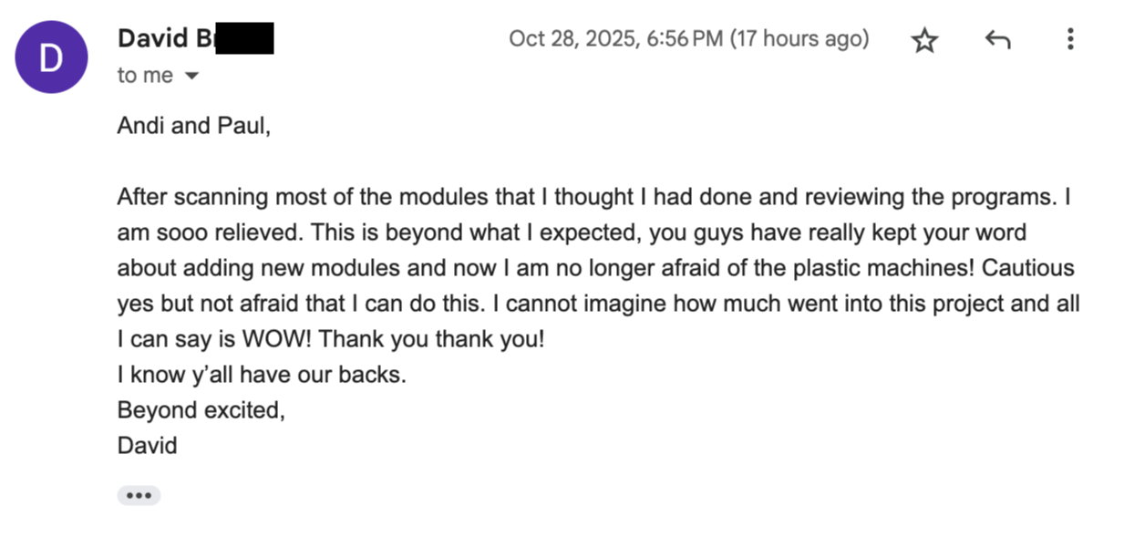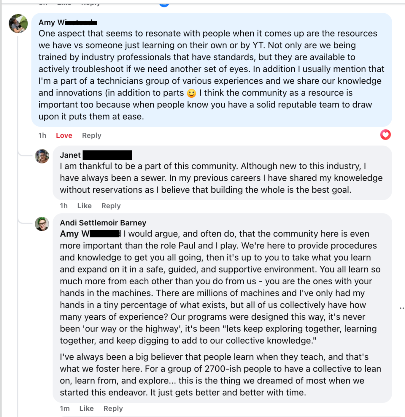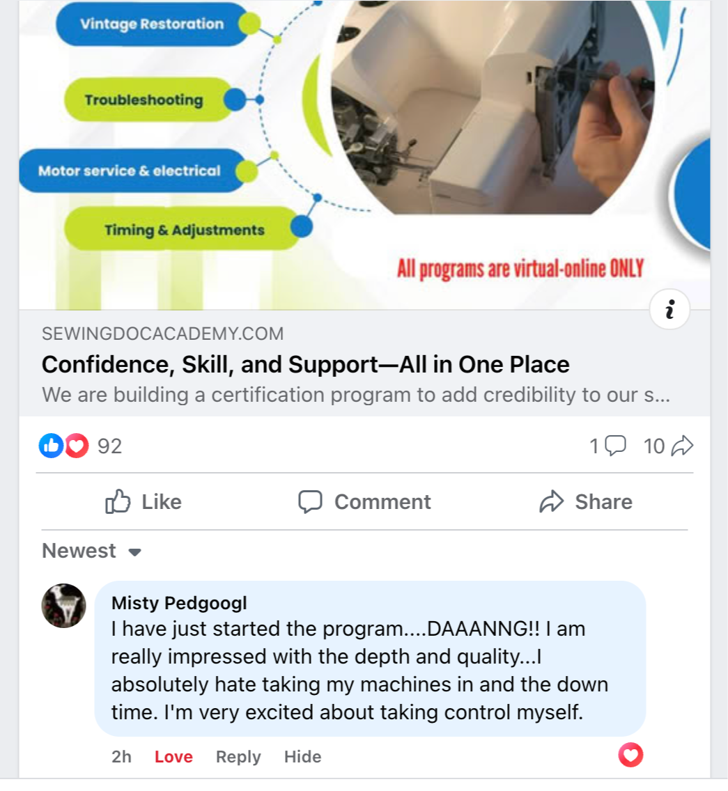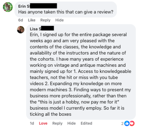 Amy came into the program after learning some of the basics through trial and error on YouTube. She says that having live humans to help in uncertainty is what gave her the confidence to really dig in on offering her services.