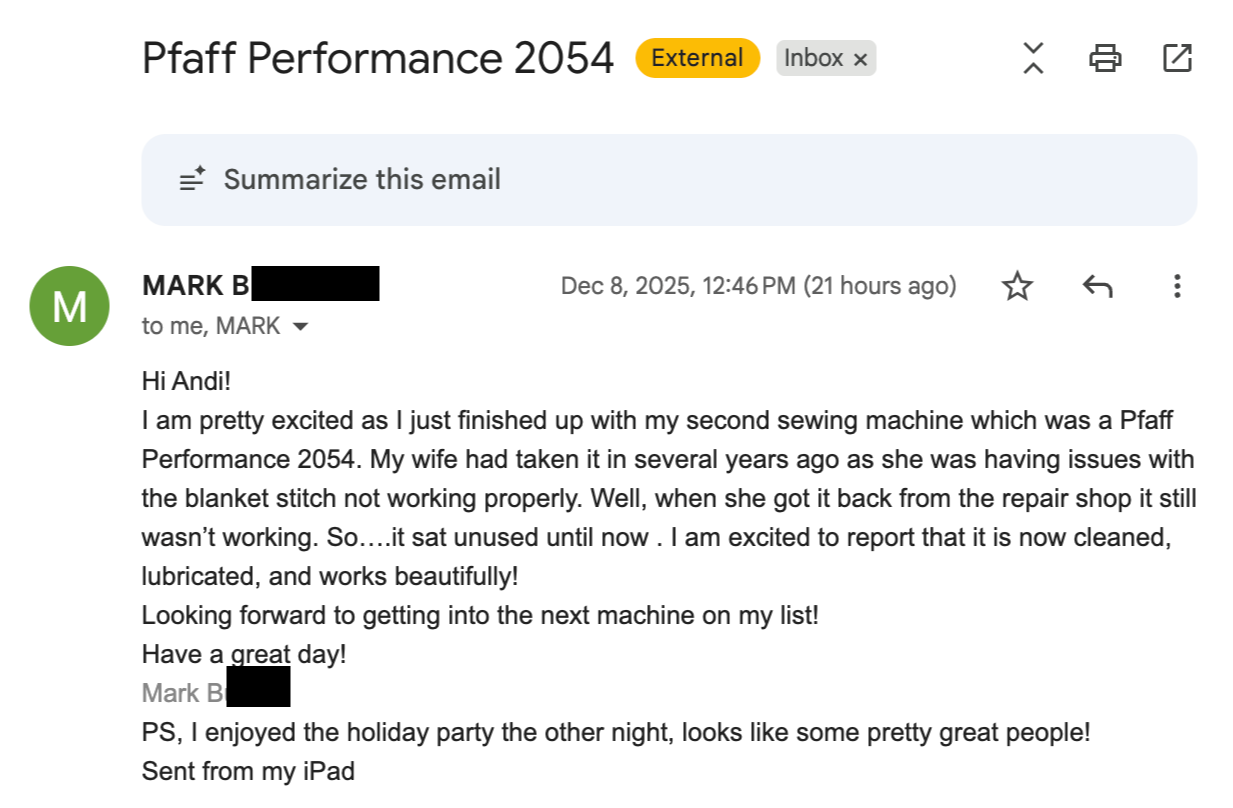 She is now branching out into modern machine service for her customers.