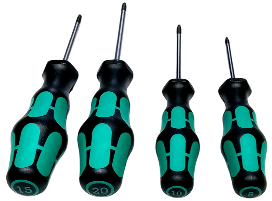 This set of flathead screwdrivers features a laser-etched tip for precision, grip, and better torque. this set includes 4 different sizes.